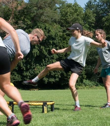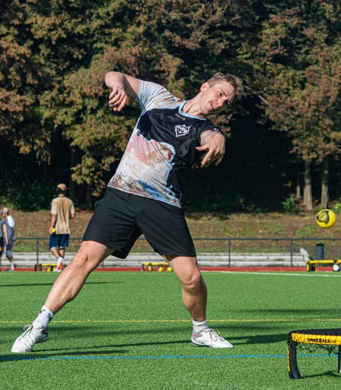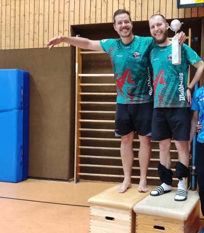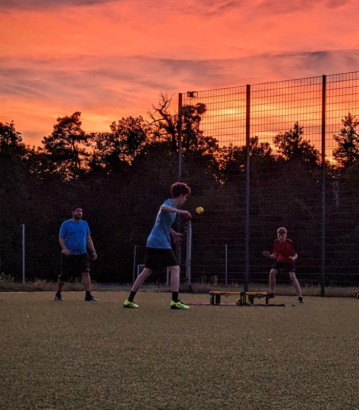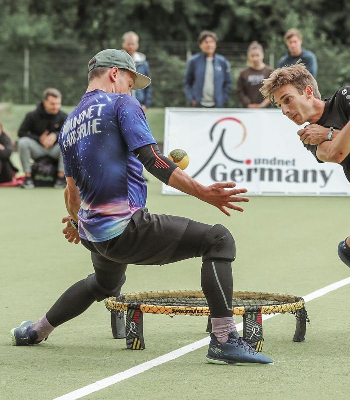 Wir sind eine große Community, deren Anfänge im Karlsruher Schlosspark zu finden sind. Nachdem wir seit 2019 Kurse im Hochschulsport anbieten, haben wir 2020 die Roundnet-Abteilung am MTV Karlsruhe gegründet. Dadurch können wir unseren mittlerweile über 80 Mitgliedern sowohl im Sommer als auch im Winter mehrere Trainingszeiten und Spielmöglichkeiten pro Woche anbieten. Alle Niveaus sind willkommen und es gibt sogar speziell zugeschnittene Trainings für Anfänger:innen und Fortgeschrittene. Viele unserer Mitglieder fahren regelmäßig zu Turnieren und wir richten auch selbst Turniere aus. Wenn du bei uns vorbeischauen willst oder Fragen hast, melde dich gern per Mail (bevorzugt) oder auf Instagram.