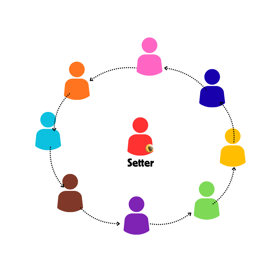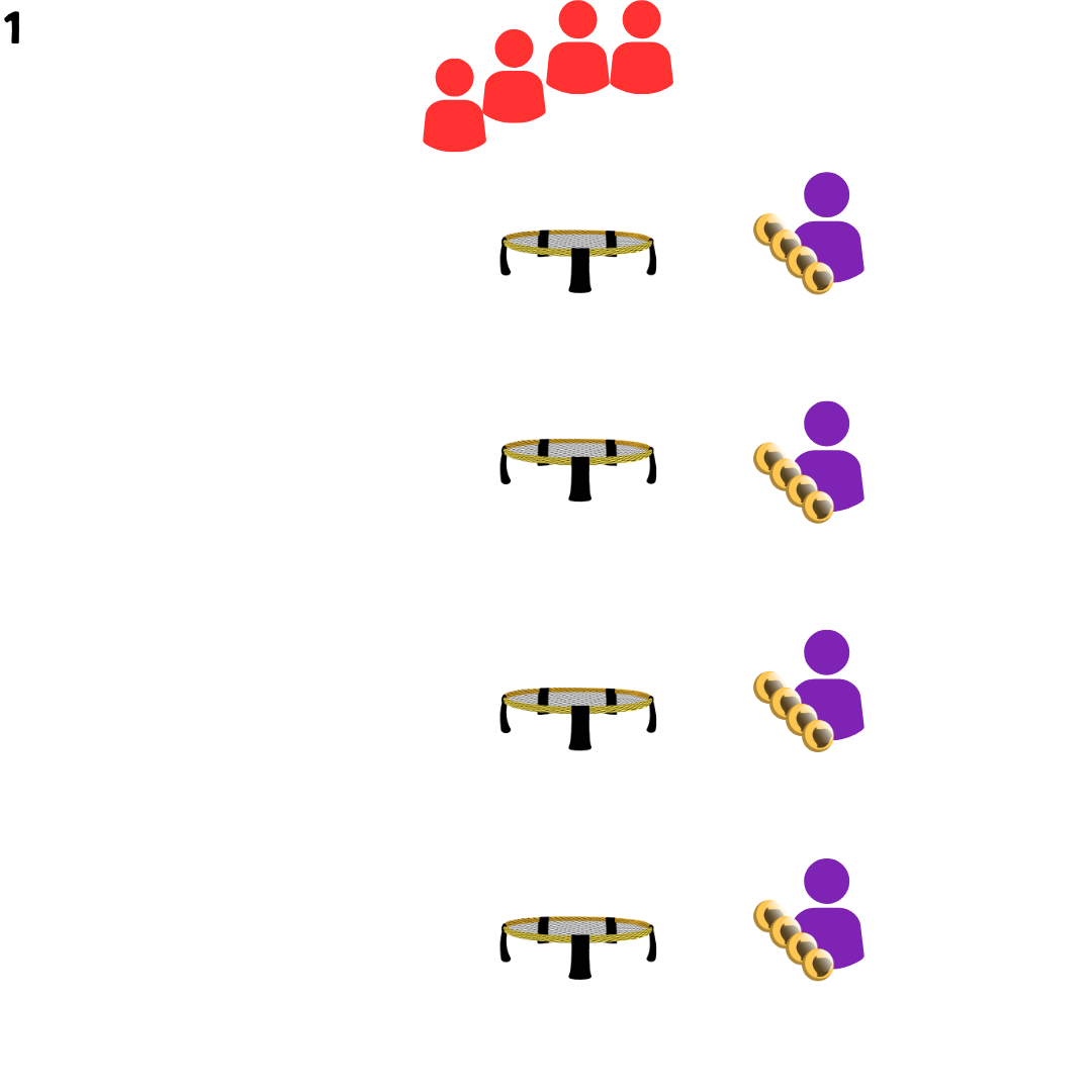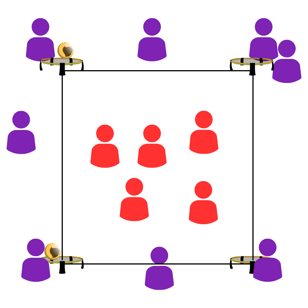 These exercises require excellent ball control, consistant setting and a diverse pool of precise hits. They live of long rallies, enabling many touches and lots of repetition, leading to a speedy improvement for all players