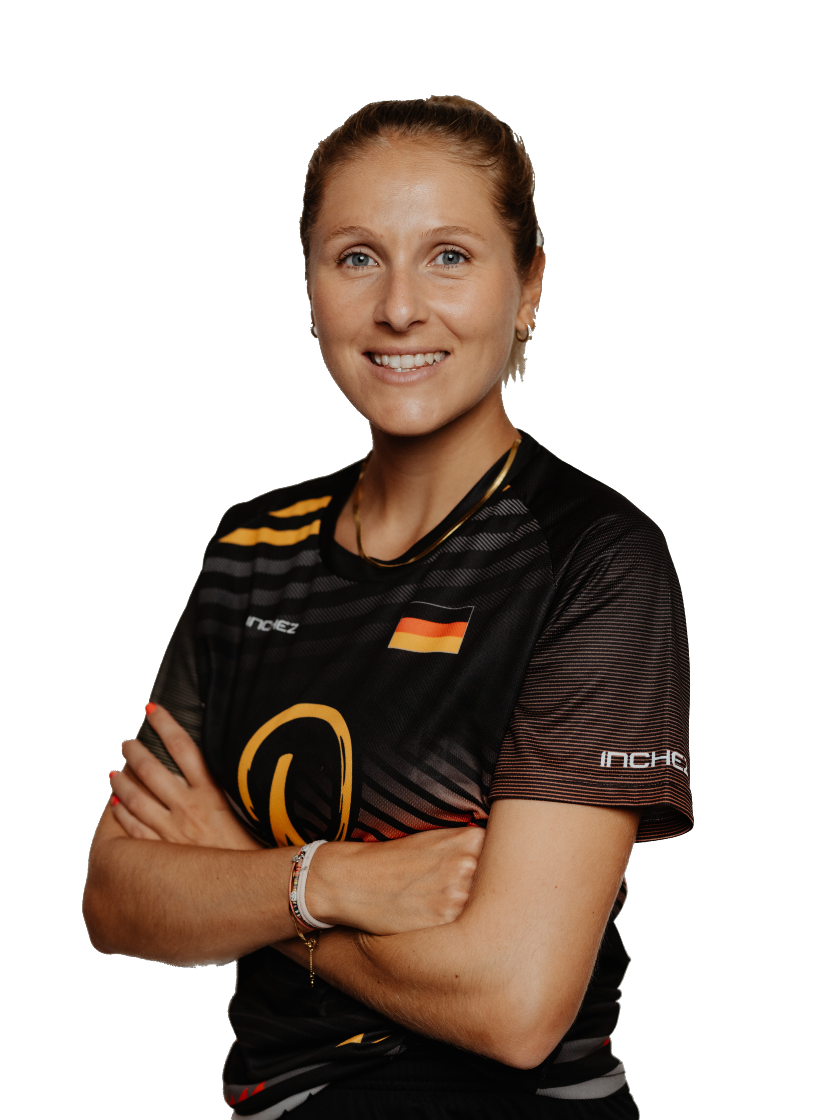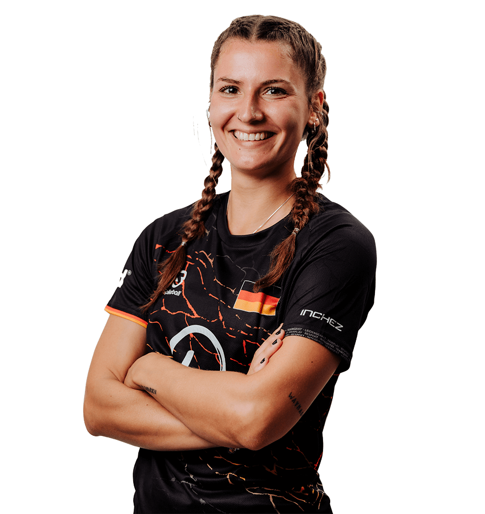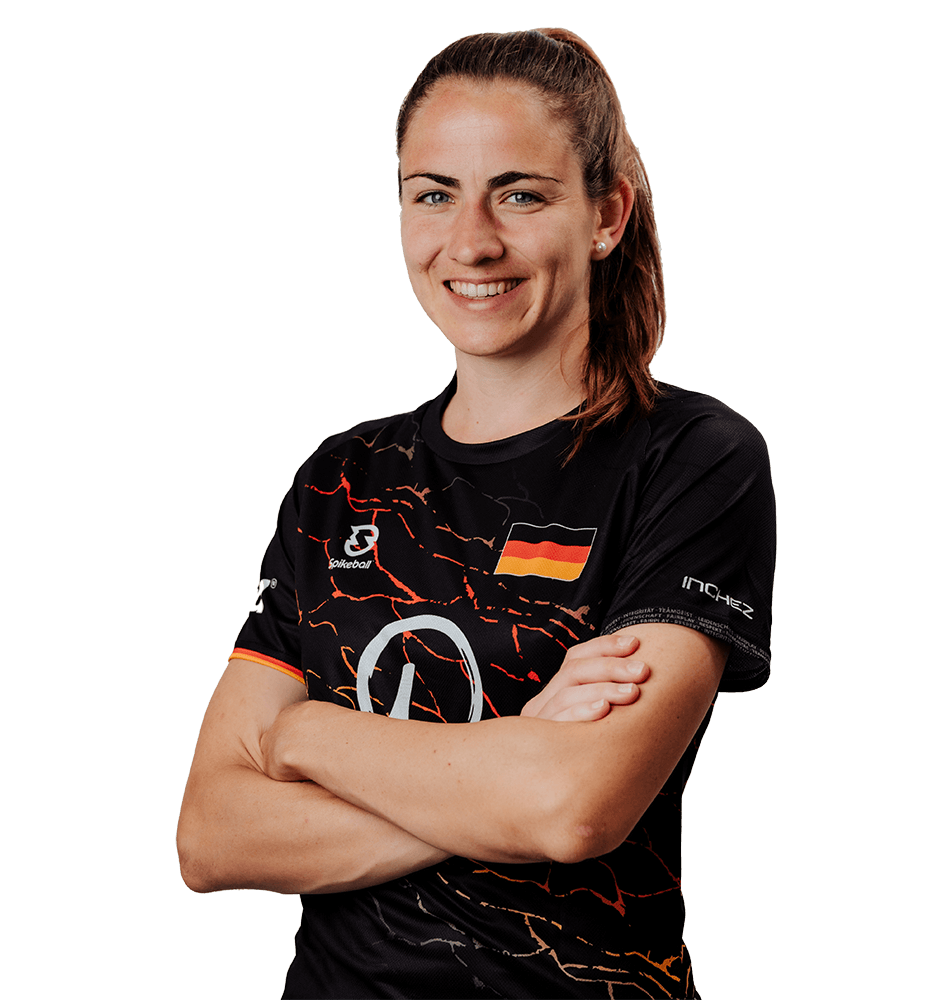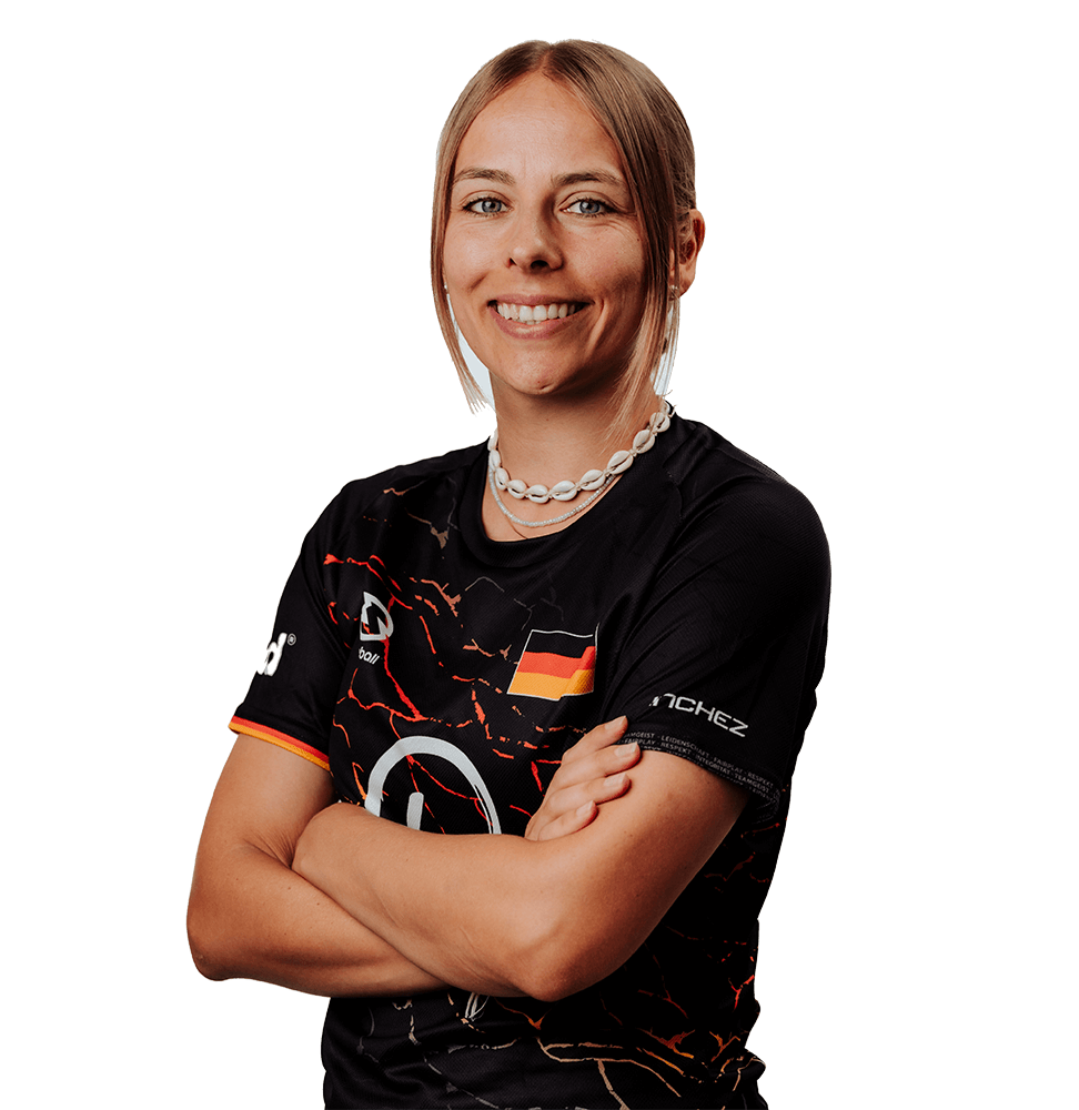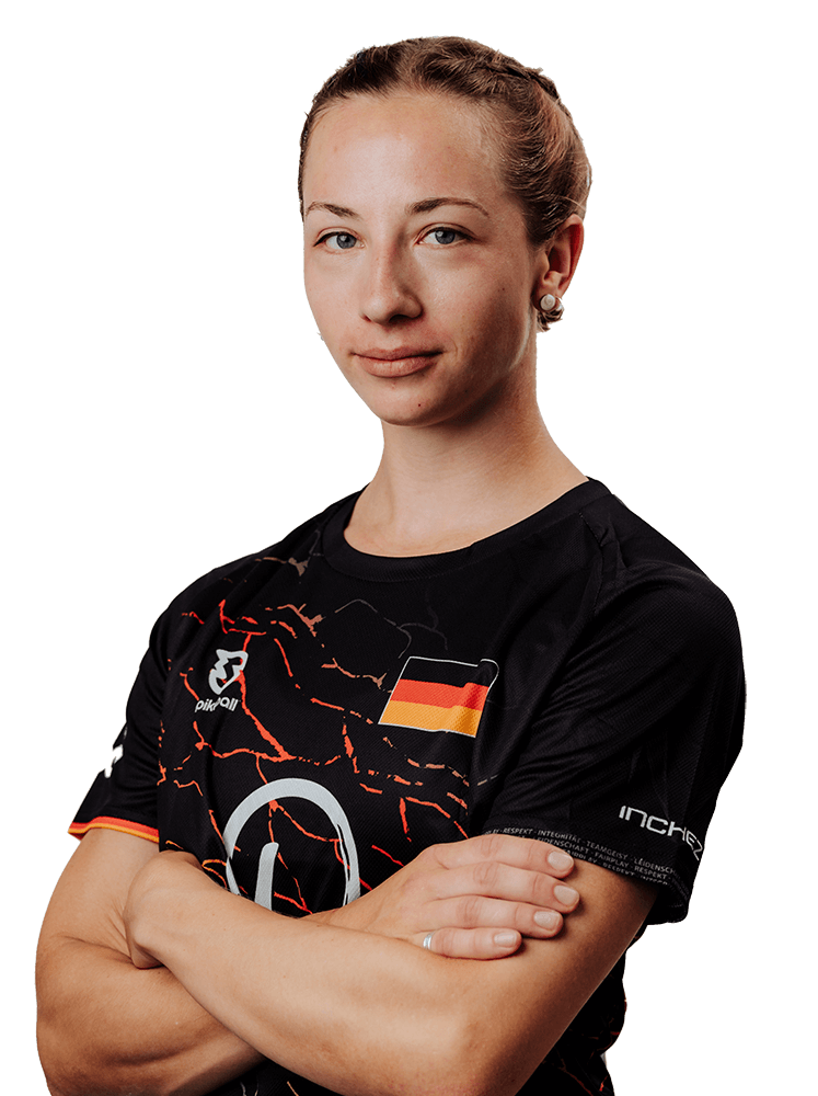 Franzi is a true defensive artist and brings a level of athleticism to the field that is simply impressive. After her strong comeback from injury, she was runner-up in the world championship 2024 together with Julia. Her incredible recovery sets save balls that seemed long lost. There's no mercy with Franzi in the team: her opponents can dress warmly, because giving up is not an option with her!