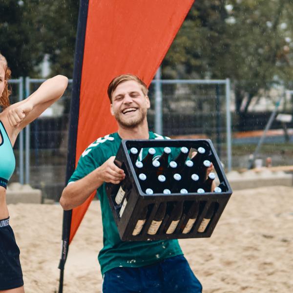 Ein Roundnet-Zirkusartist mit beidarmigen Winkelbrechern, Tweener in Backhandschellen am Werk. Er weiß zwar selbst nicht immer wie er den Ball noch auf das Netz bringt, aber besonders das macht es für die Gegner unberechenbar.
